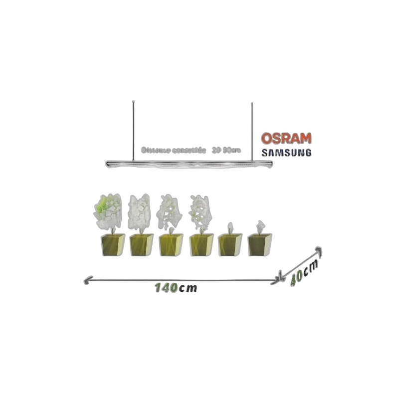 Avec une superficie d'éclairage de 140cm x 40cm en croissance et 120cm x 30cm en floraison, la X90 s'adapte aux différentes phases de développement des plantes. Elle s'adapte également à différents types de végétaux: carnivores, cactus, petites plantes vertes...